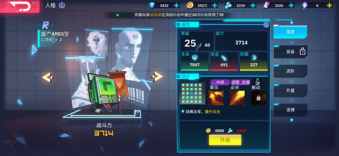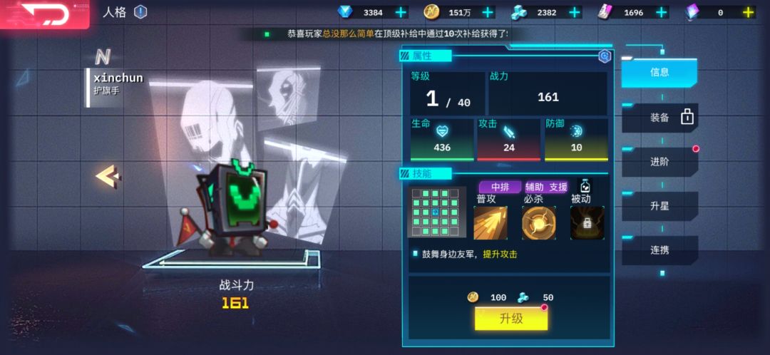 搞了半天发现了三个R级卡,普通攻击和大招都分别加攻击,速度和暴击。如果缺一个可以考虑N卡里的护旗手,不过会更脆一些,如果小怪有aoe会容易死。