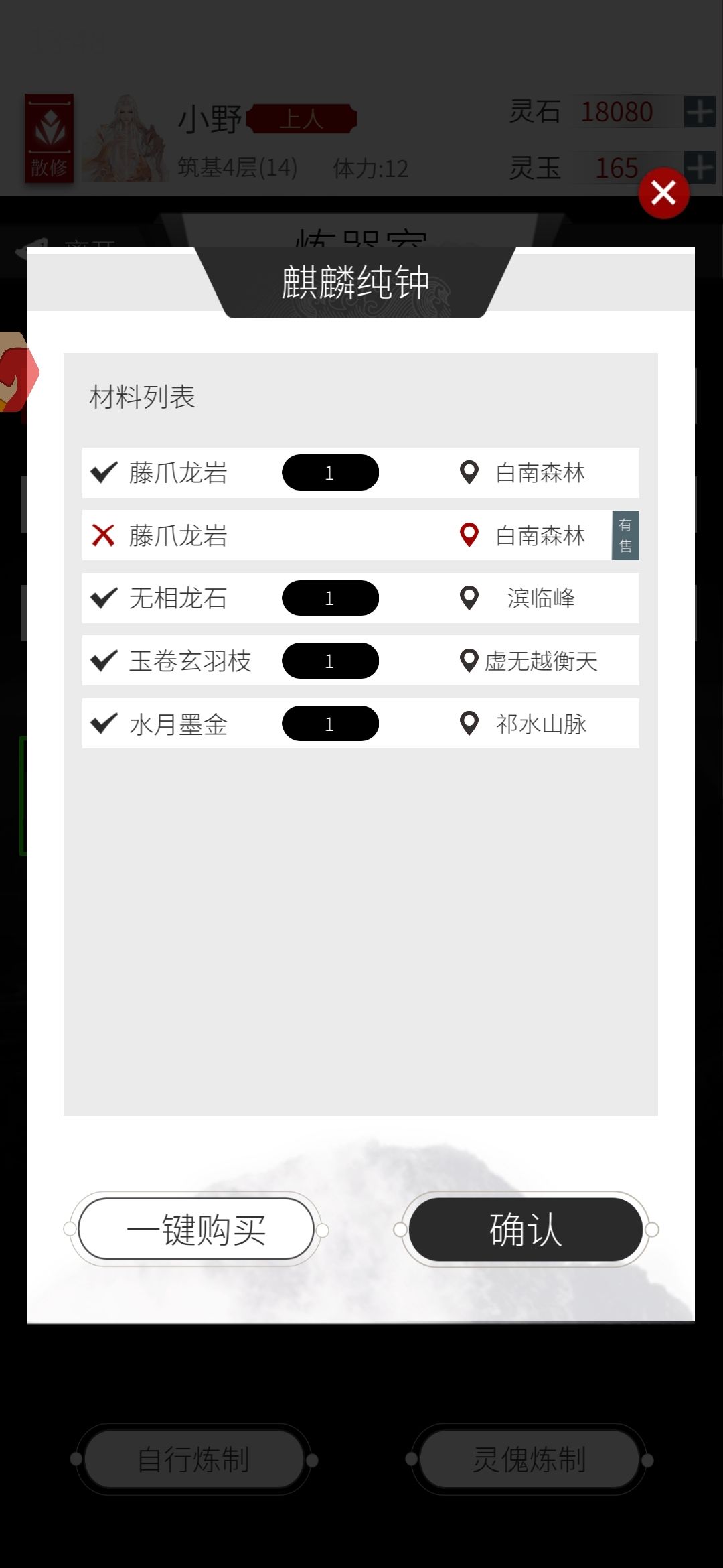 为什么我材料够了但是炼器却显示材料不够,就那个藤爪龙岩,明明纳戒有3个,但是炼器却显示只有一个