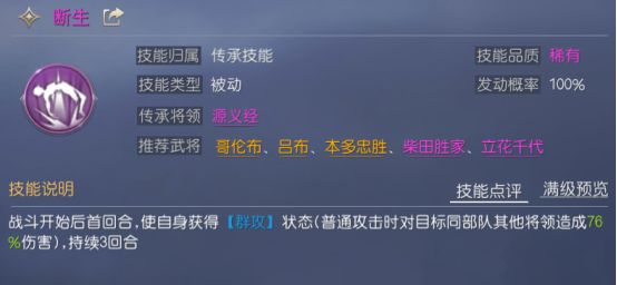 汉尼拔二技能推荐断生,首回合可使汉尼拔获得群攻状态,该状态持续3个回合。当汉尼拔发起普通攻击时,可对目标部队其他将领造成伤害,断生满级后,对其他将领能造成130%的高额伤害。