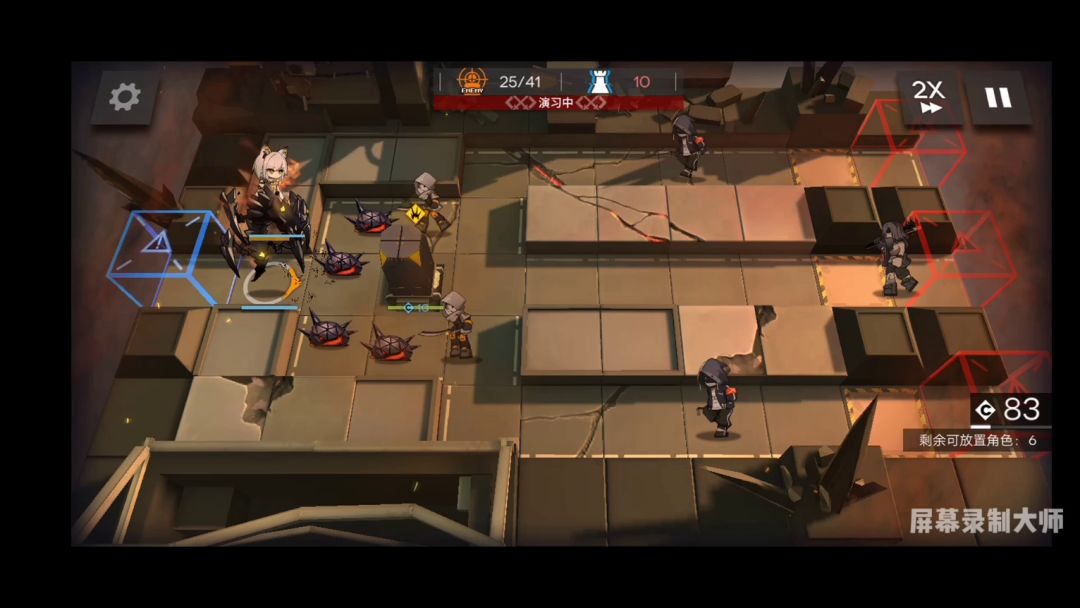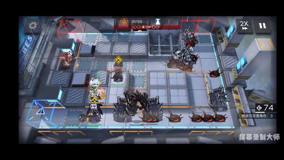 经测试,满级专三一技能的凯尔希可达到637的防御力(这里因为信赖没满所以只有592),算一个名副其实的高台重装了,m3可达1012防,是一个纯加物抗的技能,虽然在后期基本没用,但是对于刚入坑的萌新来说,m3极高的攻击力和血量甚至在1级的时候就可以切得动第一二章除了黑盾和碎骨这样的高防大怪以外的所有怪,并且由于前两章小怪伤害普遍不高,所以有一技能的防御加成,m3完全可以单守一路。但是,又因为m3本身对凯尔希的依赖和高达30费的费用,导致了它的站位和使用有了很大的限制,而且2s的的功速在面对前两章不能一击打死的怪海群时就处于劣势(如图)。但是,专三后的一技能可以用来抗大爹的矛(不过估计没人会带1技能打吧)