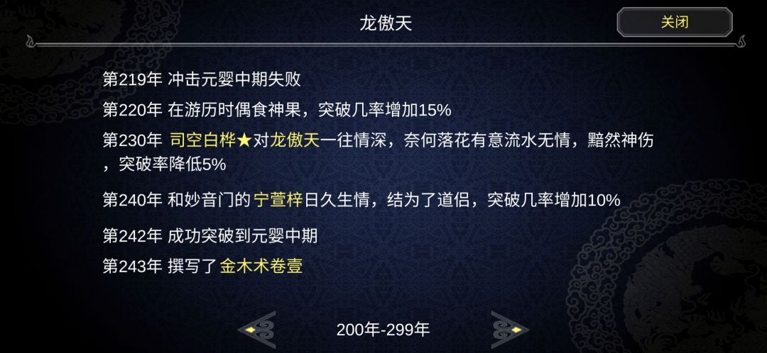 作用:容易触发情感事件。我觉得这个情感事件大部分是正面事件(我目前没有触发过爱上魔修)。这个感情事件大部分都是别人送你法器(就这个NB)。下面我放一张图