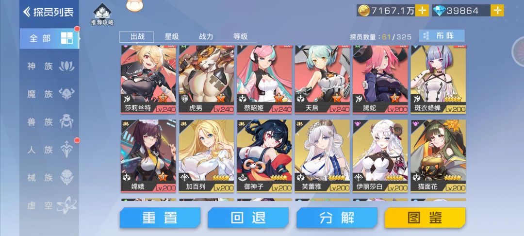 其实很多人屯碎片高抽还是特抽或者彩卷之类的,在其中单周探员集结可以适当的用一下特定的角色碎片,比如我这周把嫦娥和莎莉斯特的碎片给用了,另外抽了40抽特异卡,用了大概几百魔族碎片,开了几个三系自选宝箱,战力大概涨了七十万这样,把莎莉升十五了把虎男十七了把菜昭姬升到了十七,把嫦娥十四了,天启也十七了,不过随机碎片和高抽还是不要动,那个对目前我们来说没有任何提升,建议留着到五十天。总之能前期尽量不挨揍就不挨揍,但是也不能荒废战力,合理屯还是比较重要的,另外钻石千万不要乱花,后面五十天的活动有的需要钻石的,时之轮回,五千钻买十连,三十连保底大奖,好像是特性和开专属的那个都有,还有饰品精华千万不要洗手镯,留着后面买特性,这个特别缺,商店的进阶石多买点,后面升星很缺的,还有纹章商店前面先别买,等后面商店等级高了再买,这样就可以白嫖橙色纹章了,还有端午活动可以白嫖一个星源,端午活动商店可别错过哦,另外我们区tap16区现在是32天,我也还在屯,下面放上前后对比图,还有人不知道五十天的活动的话看图