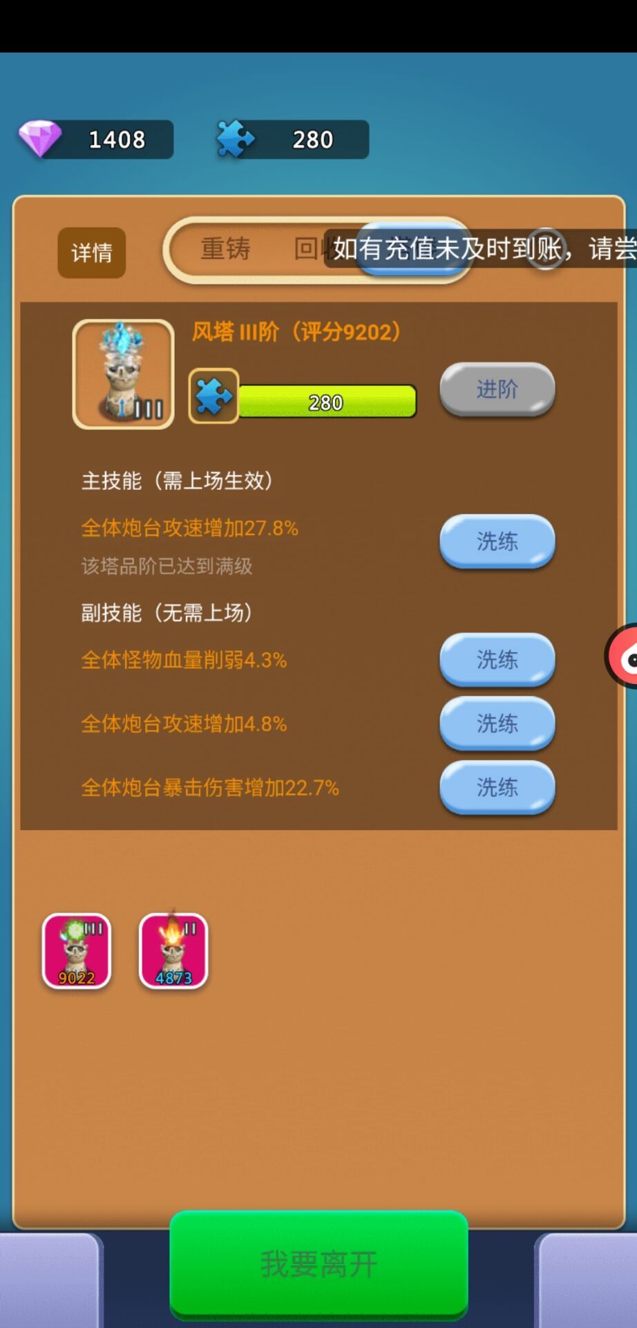 这是一款非常不错的塔防类手游,画风有点像保卫萝卜,玩法要比保卫萝卜丰富一些,首先,建议充个一元,可以解锁自动合成,这样能为我们省不少力气,也节省时间,宗旨就是不断合成合成再合成,同时解锁高级炮塔还会给钻石奖励,钻石可以升级科技。到达一定关卡可以解锁其他炮塔,又是一波钻石奖励,过瘾。前期关卡还是很容易的,不用太费精力,只要经营好,应该不是问题,后期就要考虑炮塔组合了,根据怪物的属性选择不同功能的炮塔,这时就需要玩家有一定的决策判断力,这也是这款游戏吸引人的一个方面。另外,充值很人性化,一元就可以完成首冲,可谓良心游戏,不肝不氪,完全符合大部分玩家对游戏的理解,喜欢。