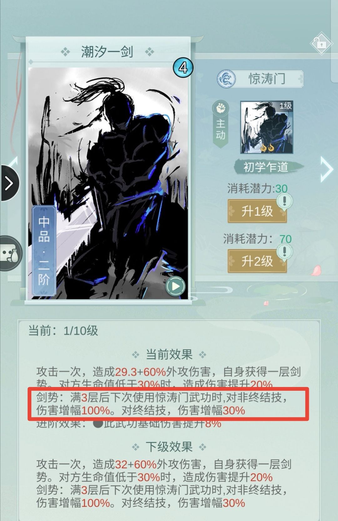②坏:剑势带来的终结技威力大削,加强只有30%,双龙破定下降,终结技释放被卡,可以看做是门派整体削弱