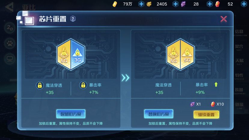 刷到自己两个都需要的,都🔒然后刷,当芯片品质提升没到最满,系统提醒你替换方案记得替换,因为芯片晋升以原来芯片为基础(无论是🔒一个还是两个都一样)