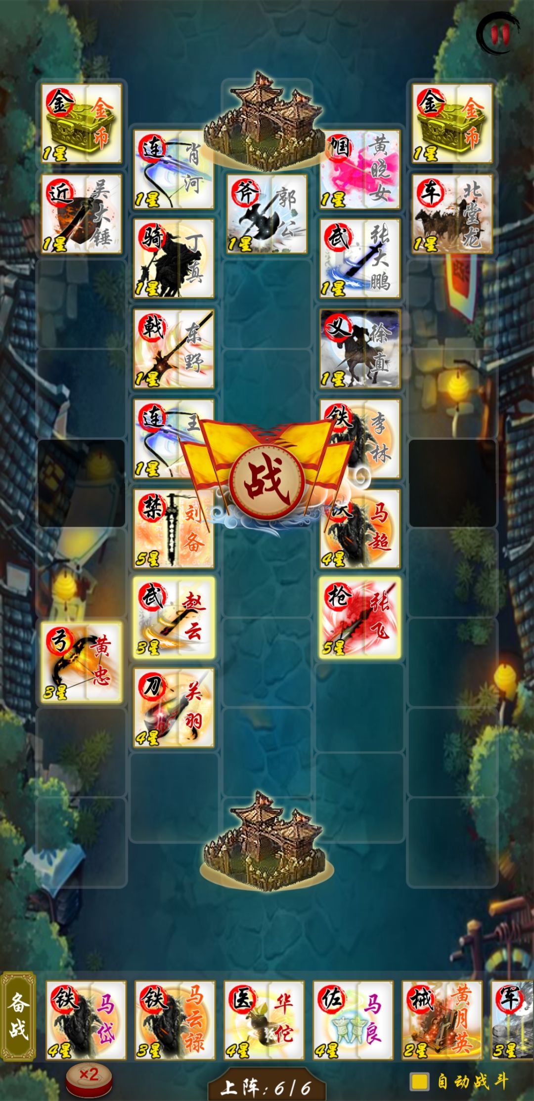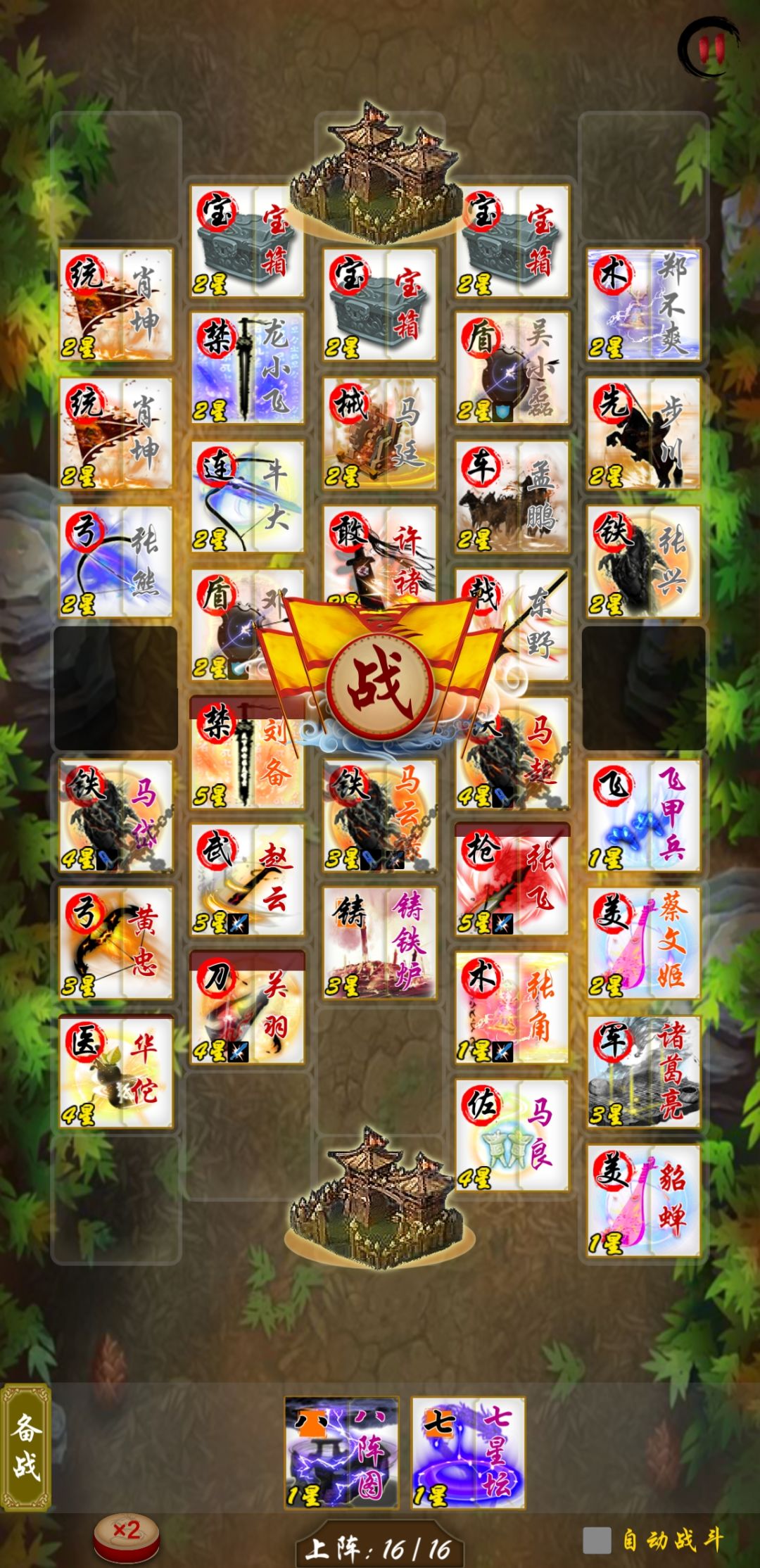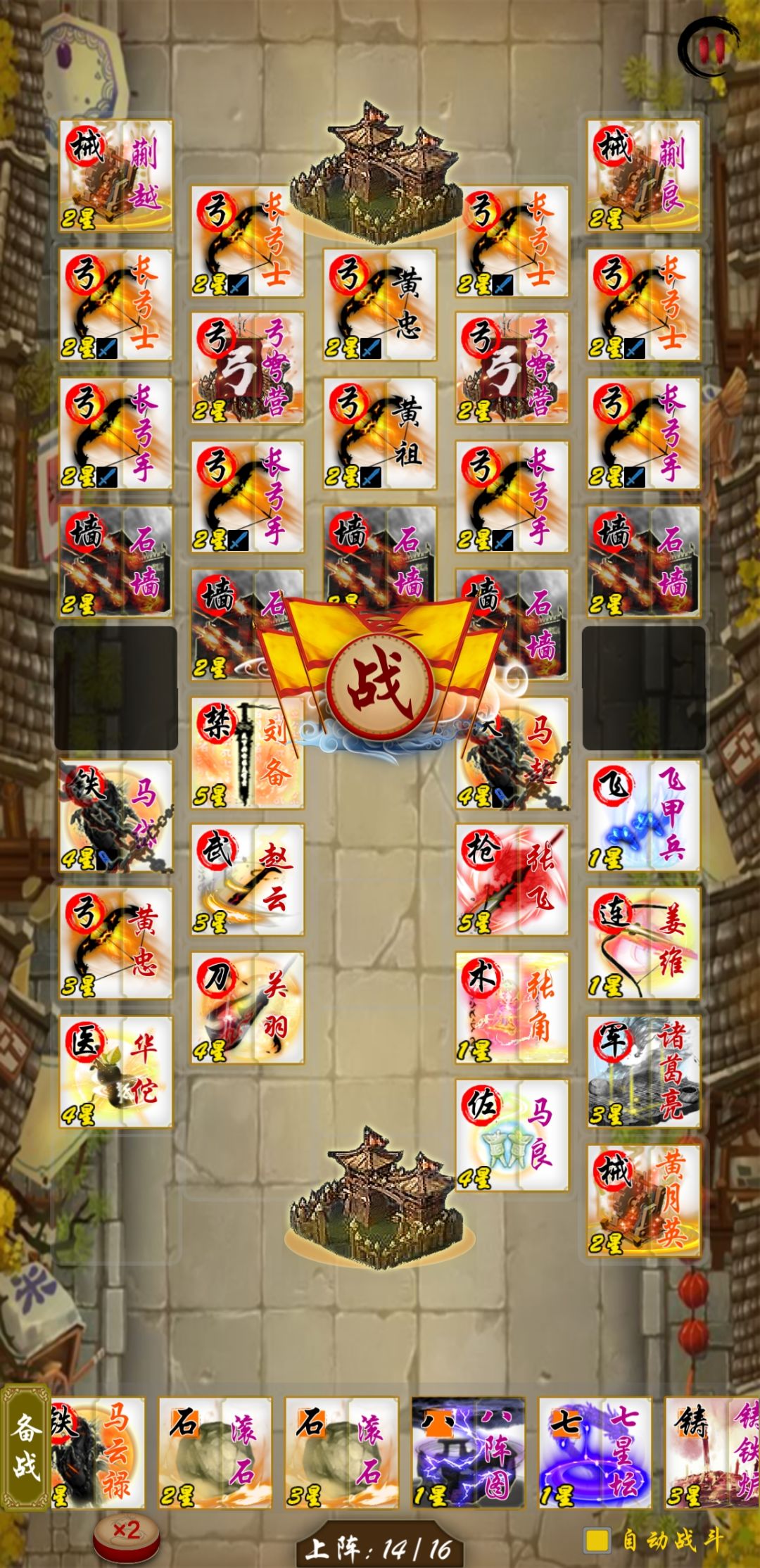 12关,第一个红箱子关卡。刺客关,很容易减员辅助的一关,其实这关刺客优先级别我也没太弄清楚,有时候打黄忠有时候华佗有时候马良。但因为才12,我觉得一轮秒不掉我黄忠或者华佗,所以我给马良补了个防御建筑(如果实在没有,那就听天由命吧)运气较好,无减员过关。