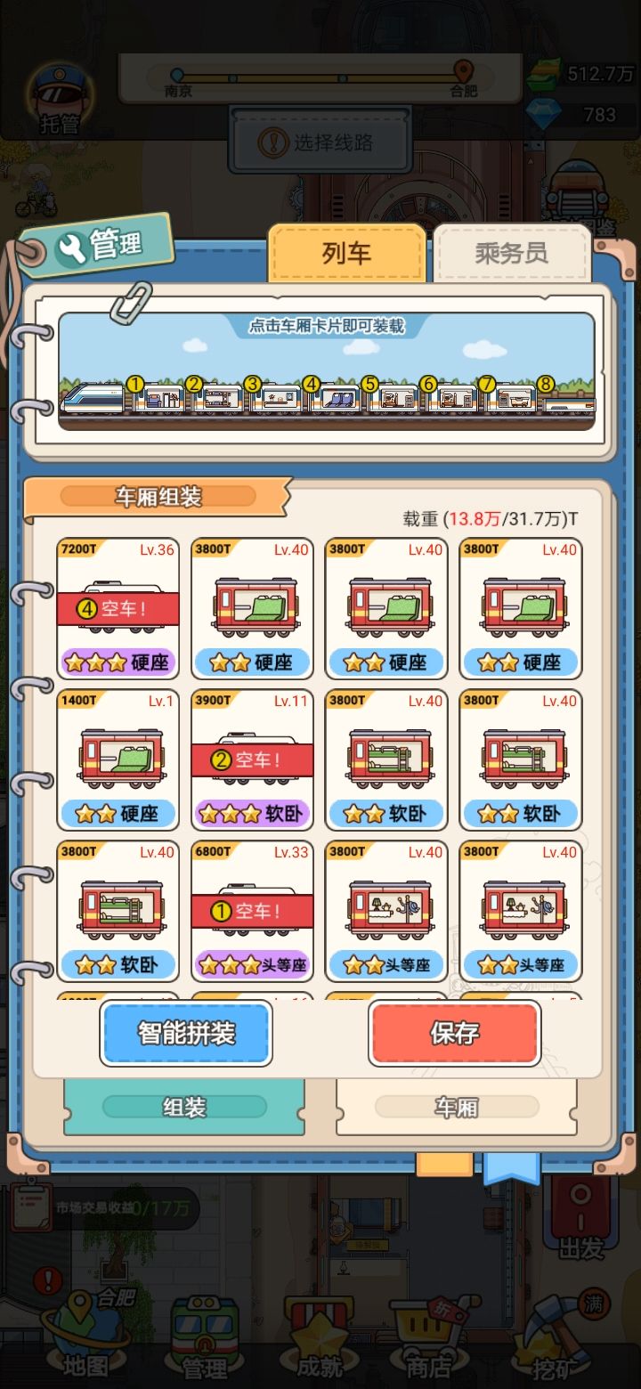 个人感受:车厢不用最求满等级,货矿32级出六个仓位就行,头等6人,软卧8个,硬座18个就行了。再升级就是浪费钱!
