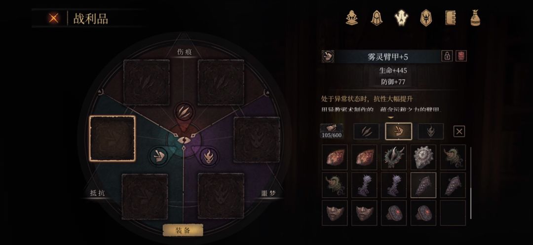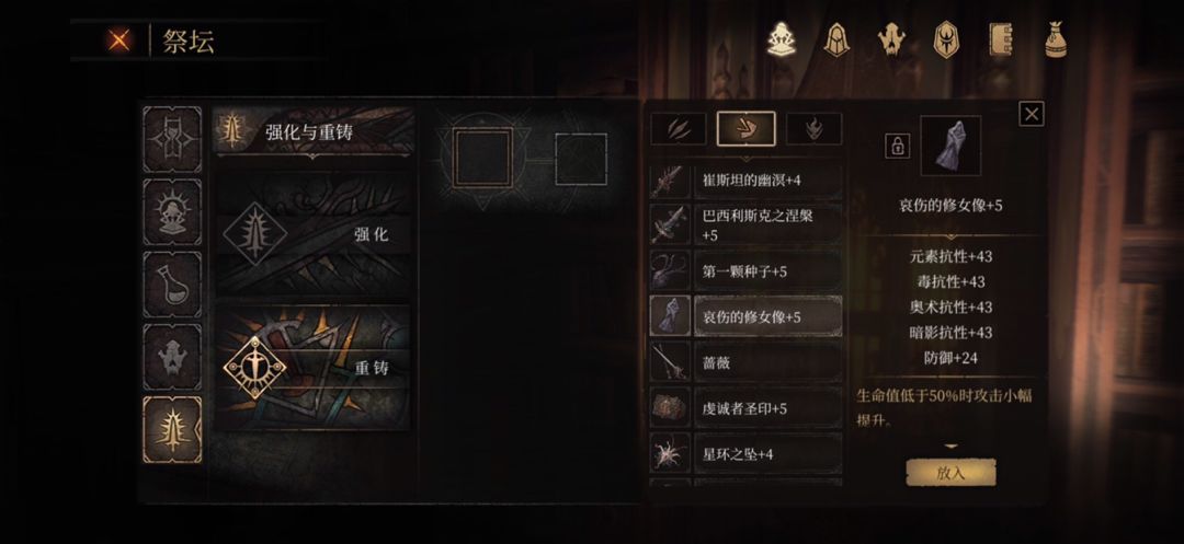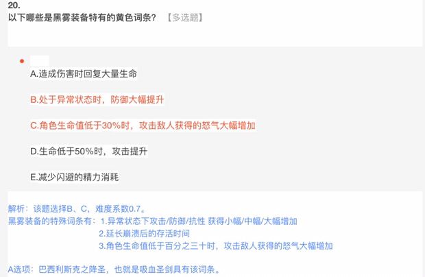 C选项:弗拉梅尔之戒、黄铜面饰、原石护符等黑雾装备独有该词条