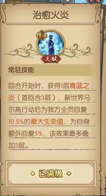 小马哥的主要辅助天赋:治愈火炎(按照三层计算全队回复百分之31.5的血量,自身回复36.5的血量。奶量十足,自身回血比较多,也保证了自身的一点生存能力)