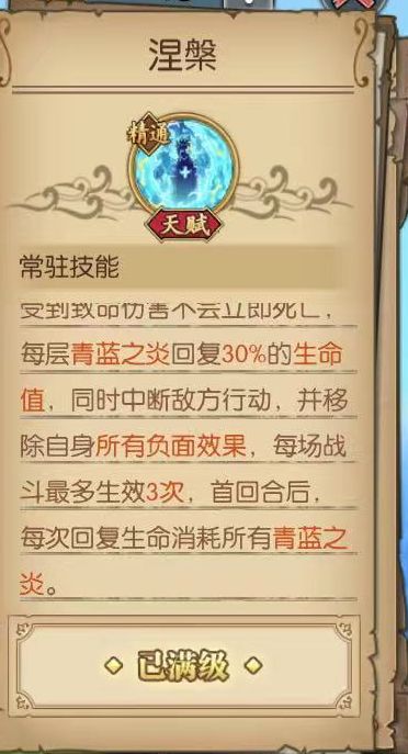 小马哥的主要生存天赋:青色烈焰、涅槃以及加速愈合(正是因为小马哥这些完美的生存天赋,才造就了他现在T0的位置!免疫属伤和真伤,并且可以复活三次之多,暴击时只承受百分之150的暴击伤害,真的是Beautiful啊)