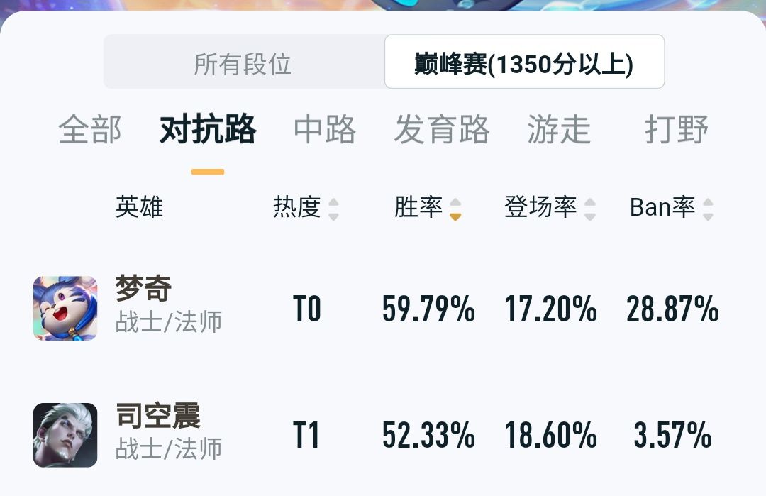近期,梦奇的胜率持续飙升,截止6月7日,其在所有段位的胜率来到58.71%,在巅峰赛1350分以上更是高达59.79%,均排行全英雄第一,表现极其强势,综合其它数据,似乎以往还没有哪名英雄的数据有梦奇这么亮眼。