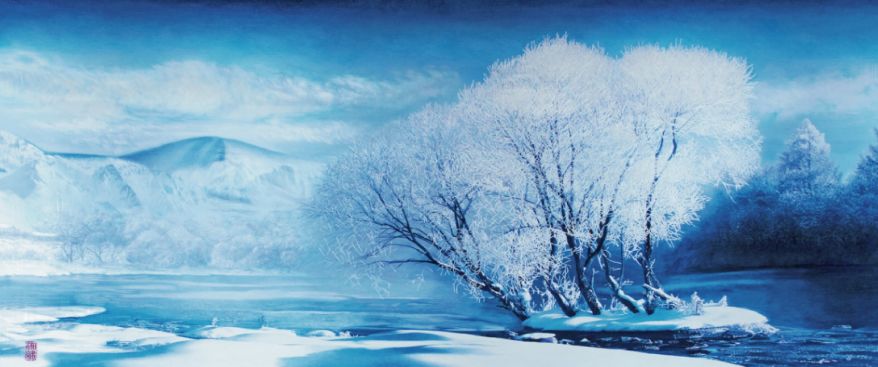 ▲巨幅湘绣《北国冬雪》收藏于人民大会堂常委楼