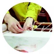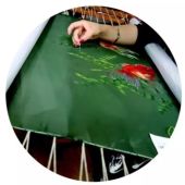 湘绣需要在绣制前将刺绣底料固定于绣绷上,使绣制底料紧绷平整,这样绣制出的作品才会平整不易变形。