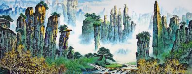 ▲巨幅湘绣《张家界》收藏于人民大会堂湖南厅