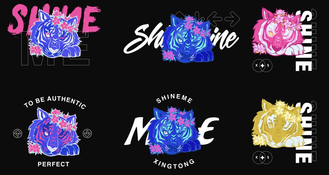 舞者们看到这只会wink的老虎了吗~我们选取了“老虎”作为图腾核心元素,分别设计了“湘虎戏蝶”(全身) “wink”(虎头)两组图腾素材,塑造全新又潮又甜的风格!