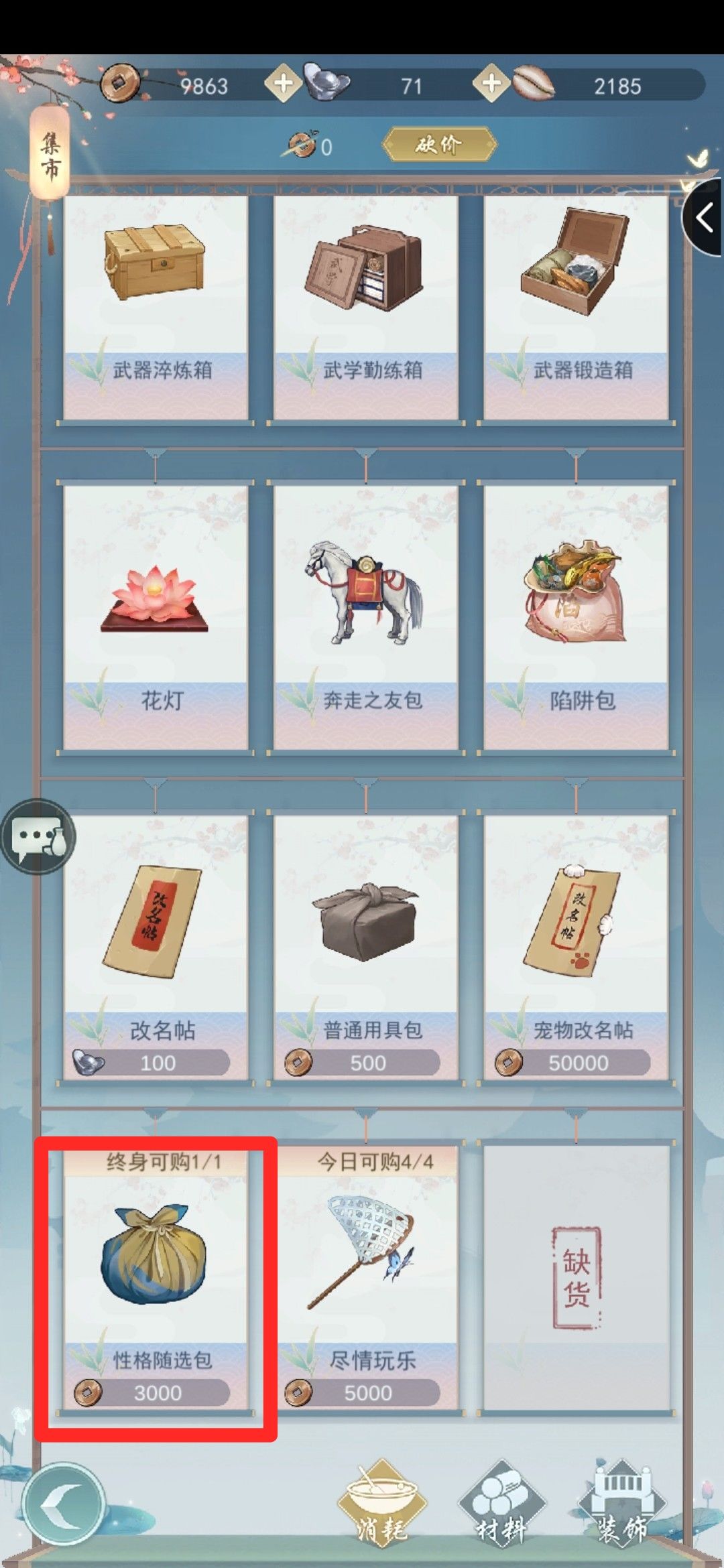 当然某些大侠之前可能没有在意过这些,不过没关系,在集市中可以花费3000点购买性格选择包进行洗点,但机会只有一次所以一定要慎重!!!