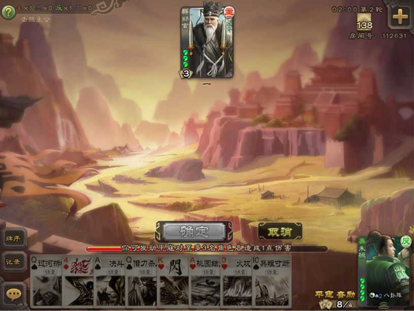 在反贼堆里,郑玄的身份是辅助,就为了防己方核心被乐,反贼头子一般都是回合内大作为的武将,而郑玄也可以很好的为他提供手牌及状态的援助,在反贼里划划水就可以赢得胜利。