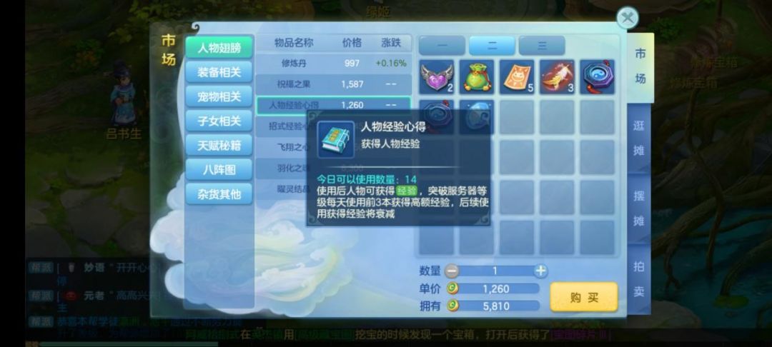 还有最重要的一点,就是市场售卖的祝福之果和人物经验心得,每天各买10个,几乎一天就能提升两级。