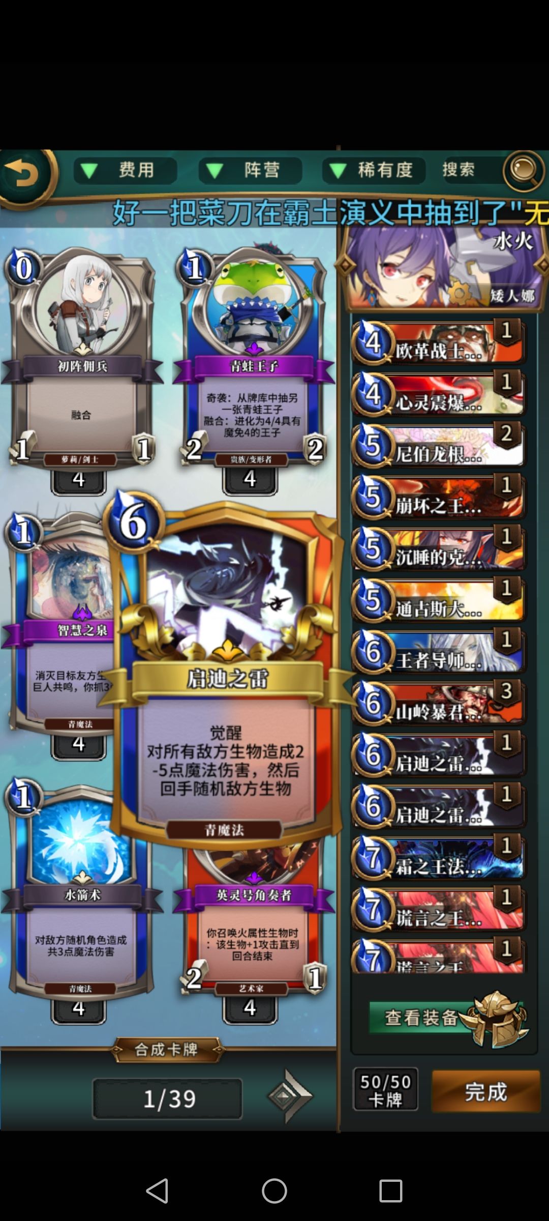 这是所有人都能组的卡组,顺的话4费结束游戏,上分可以建议不要一直玩,容易丧失游戏体验。