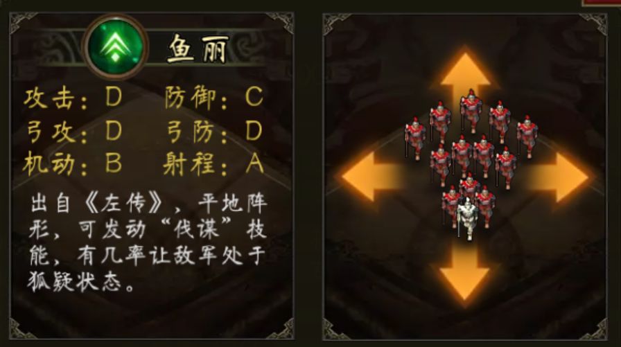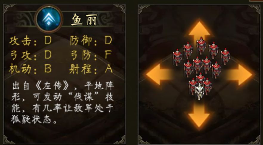 鱼丽阵自带“伐谋”技能 智力在80 90 95 100有额外伤害加成