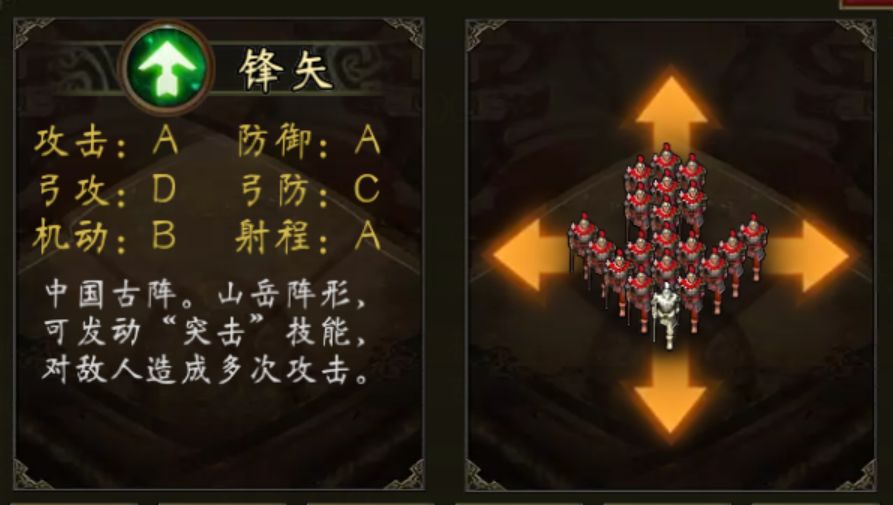 鹤翼阵自带“合击”技能(不能移动后使用)