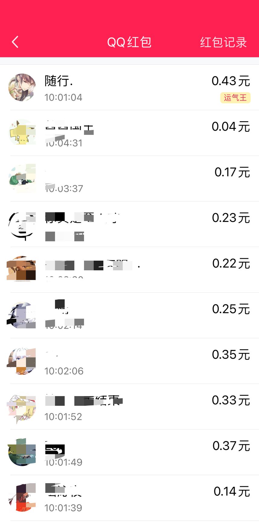 Q群的两份额外奖励,已经以手气红包的形式抽取完毕,恭喜“运气王”@随行.以及“手气王”@在下,两位大佬中奖啦~