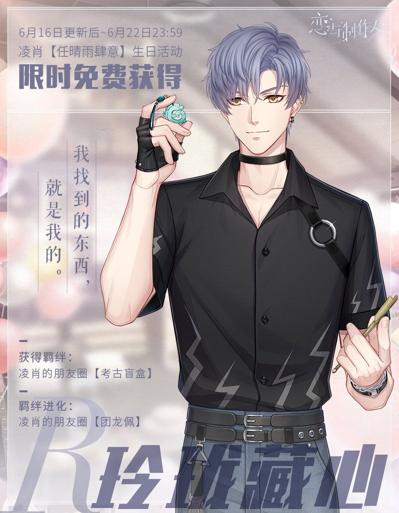 4.收集齐六段故事的回忆道具后,即可领取凌肖生日纪念羁绊【凌肖·任晴雨肆意】。