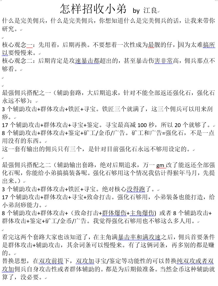 1.1.5版本佣兵综合攻略 - 组建军团打装备攻略 | TapTap 组建军团打装备社区