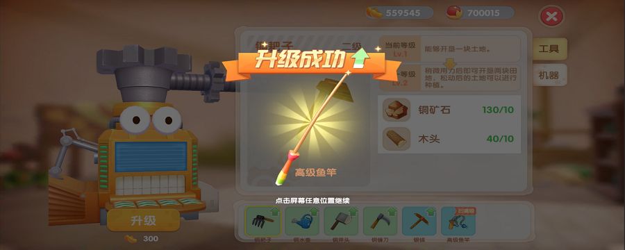 升级鱼竿的方法:首先鱼竿是属于农具这一栏的,想要升级农具首先需要农夫的等级达到对应的要求,例如想要升级成为高级鱼竿的话就需要等级到达36级才能够解锁升级。达到等级后在游戏界面的右上方找到“店铺”,点击“店铺”,就可以进入店铺界面了。在店铺界面可以找到“R7机器制作店”,点击它。然后选择鱼竿,就可以进行升级了。而鱼竿升级是需要消耗一定的材料,材料收集齐全之后就可以点击“升级”按钮来进行升级,同时鱼竿升级也是需要花费一定的摩尔豆。