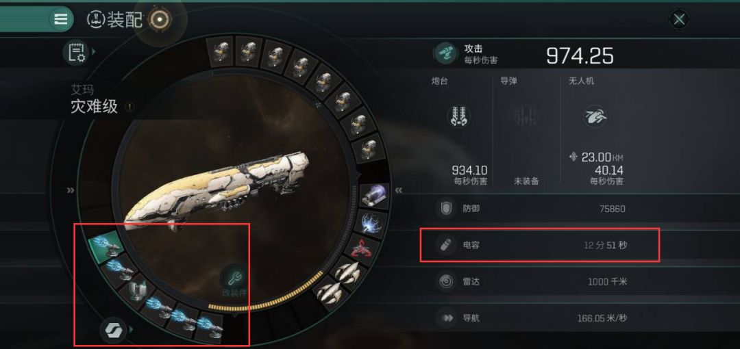 即使不带任何维修设备和推进设备,仅仅因为开火,艾玛帝国的灾难级战列舰便已无法维持电容的稳定,这还是在艾玛帝国的舰船加强了电容的前提下。要知道,如果一艘舰船的电容紧缺,就不可能有足够的电量长期开启维修设备,这无异于给自身舰船添加了巨大的防御压力,毕竟,你总不能为了维修自己一直不开炮吧。