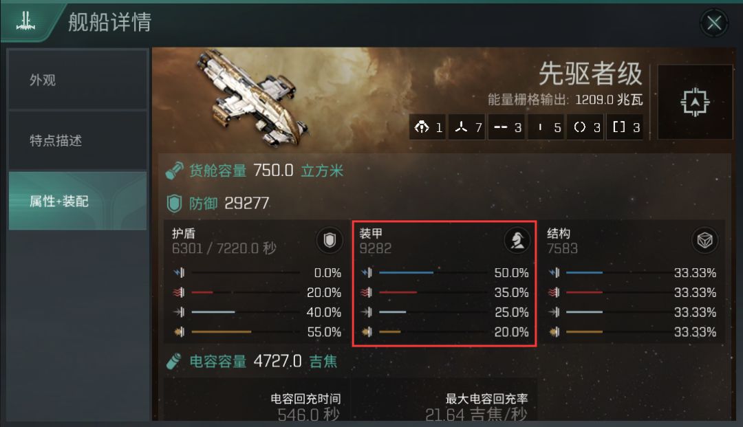 虽然布鲁提克斯具备每一级操作战列巡洋舰操作都会提高7.5%的装甲修量,但是其装甲抗性和装甲量都不如先驱者(虽然动抗要略高于先驱者,但是甲抗船更缺的往往是爆抗)。