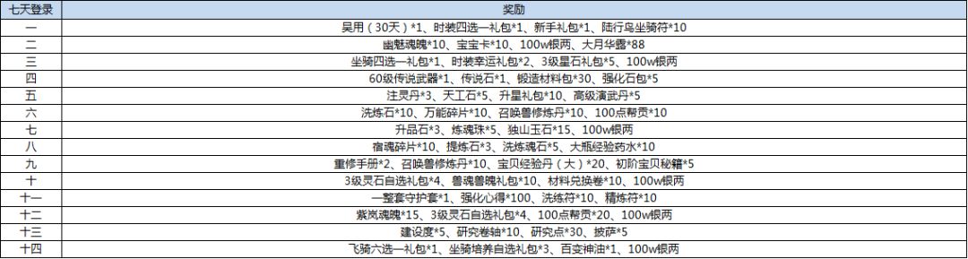 活动一:十四天登录送豪礼