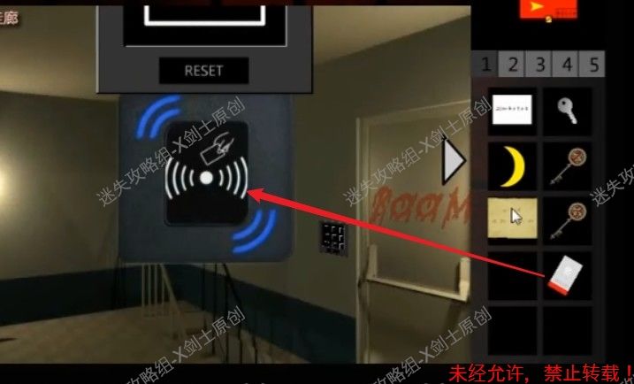 11.使用刚刚得到的提示点击五楼红色大门前面的门锁,在上面输入retaw。11