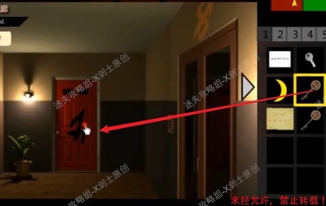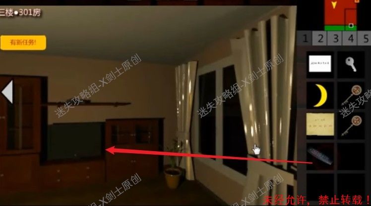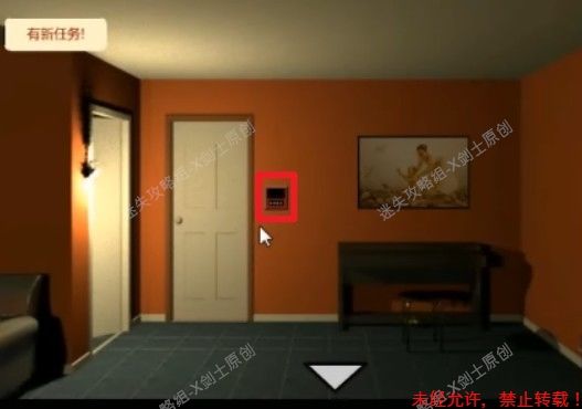 13.赶紧出去大门,使用要是打开上面写着1的红色门中,点击桌上得到遥控器。13