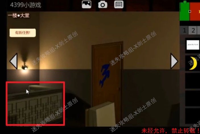 17.来到楼梯位置上上楼,来到之前有门的地方,在这个地方跟楼下最不同的地方就在于这个位置左边没有门,我们这下在在花盆旁边点击获得的碎片。17.1