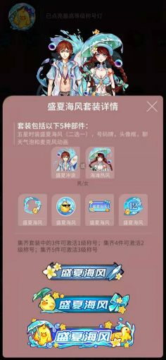 收集盛夏海风套装可激活称号,套装包括【号码牌,聊天气泡,麦克风动画,头像框,时装】