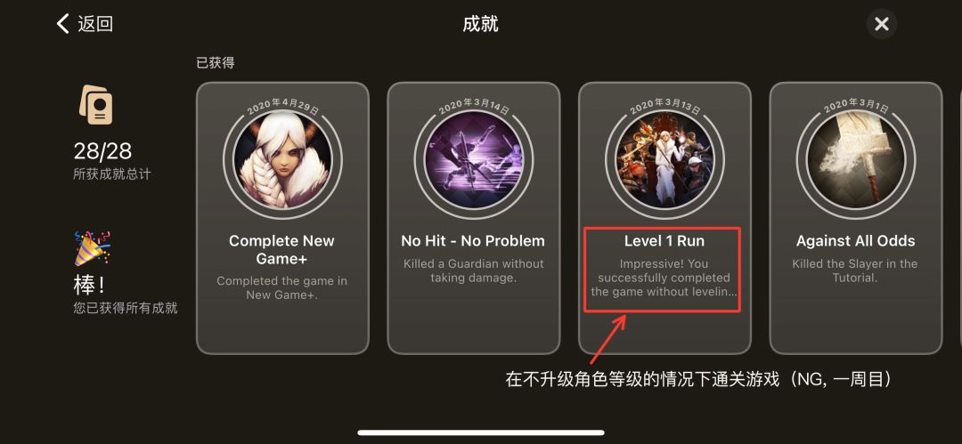 在成就系统中就数1级通关(Level 1 Run)最难达成了。