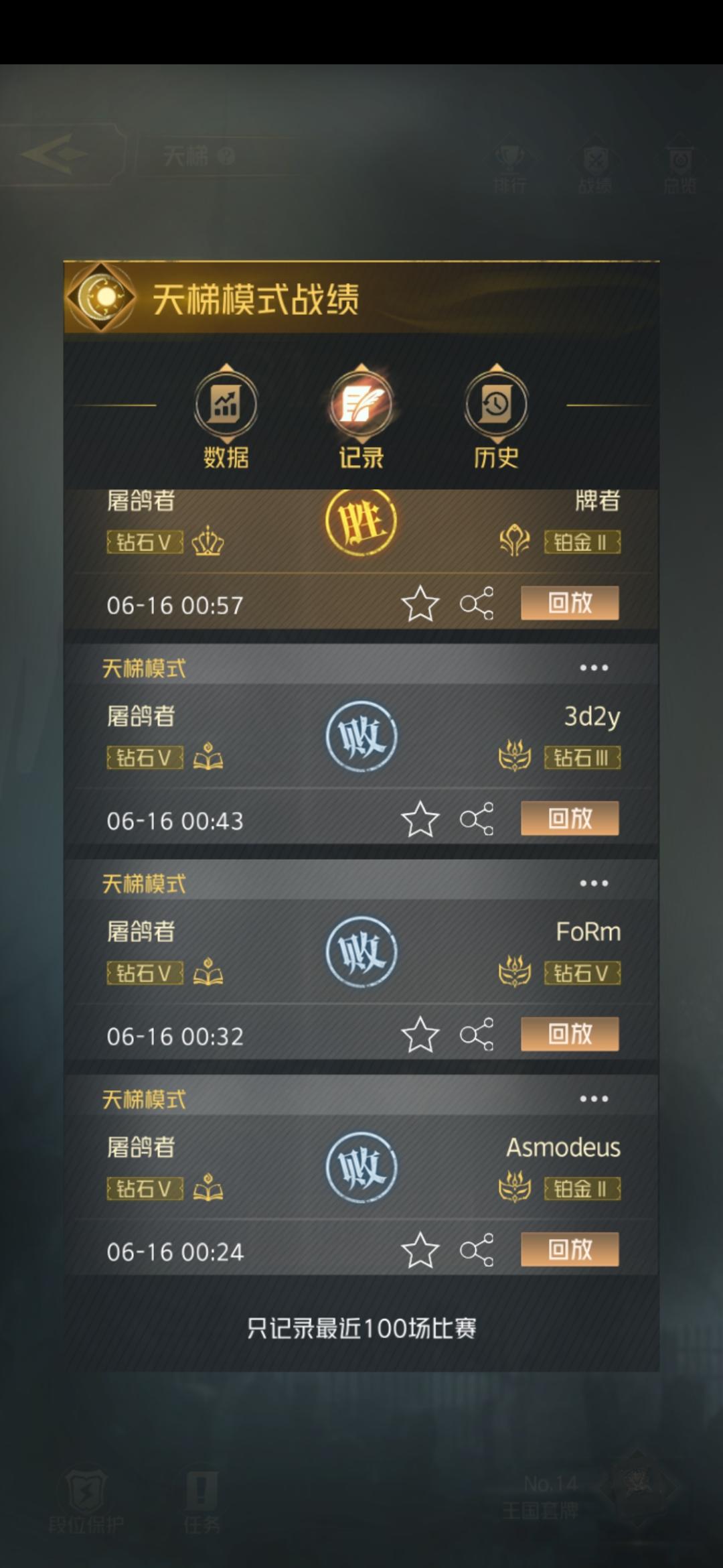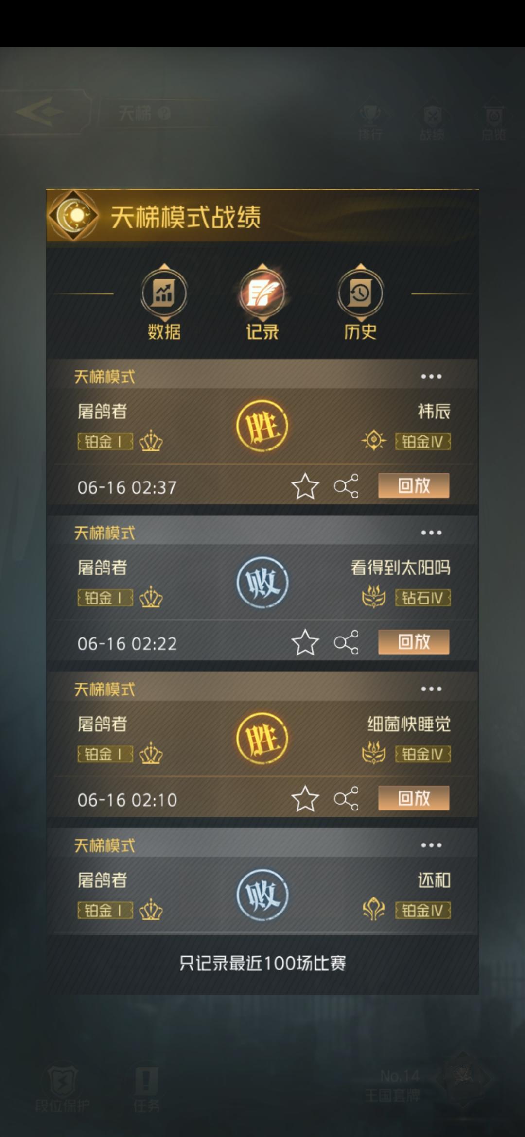 一共16局,7局对战黑袍,6局对阵潜伏,1白鸽1圣灵1王国,打溺马呢。