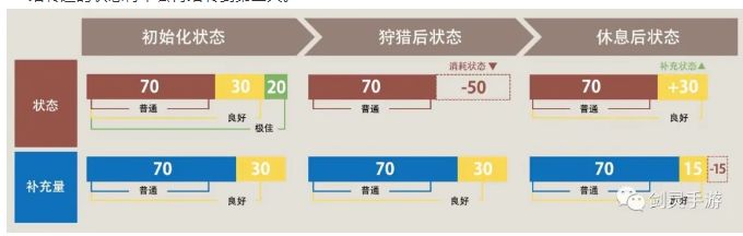 ① 狩猎时尽可能保持/恢复更好的状态,就能获得更多的奖励。