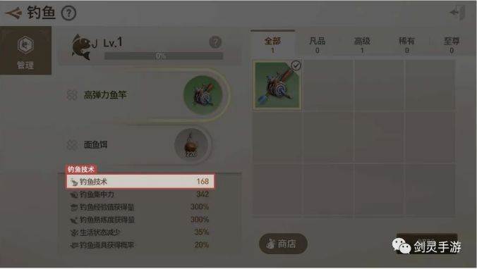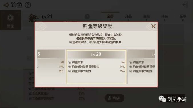 5)通过钓鱼获得熟练度即可增加钓鱼等级: