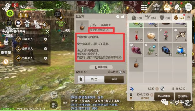 只有满足要求的钓鱼等级,才能装备鱼饵。
