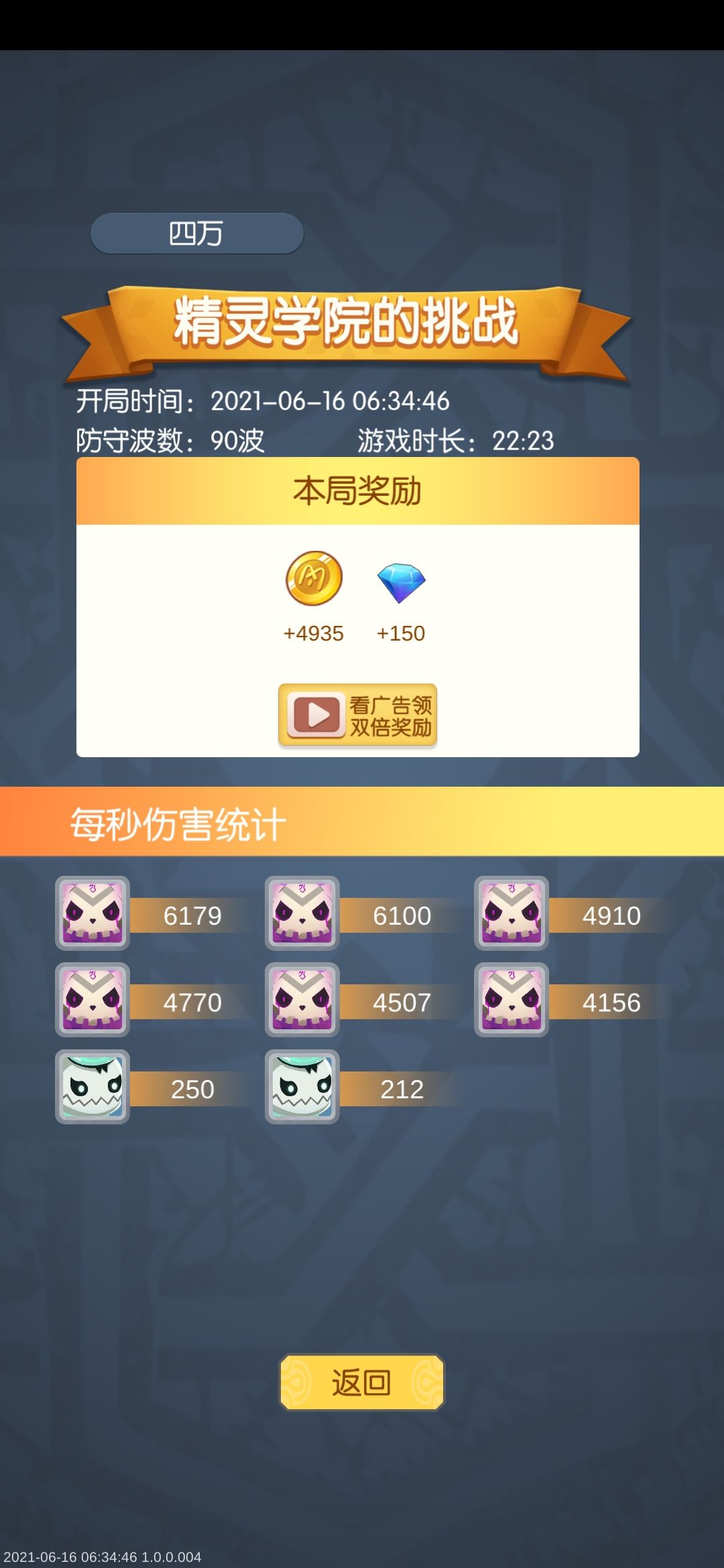 看了广告,摆好了,稳拿90波(还是都没升级过的)