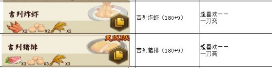 首先把一刀斋的好感喂到15,可以送食物和在宅子里互动加好感度,一刀斋的食物喜好是吉列猪排和炸虾,配方是