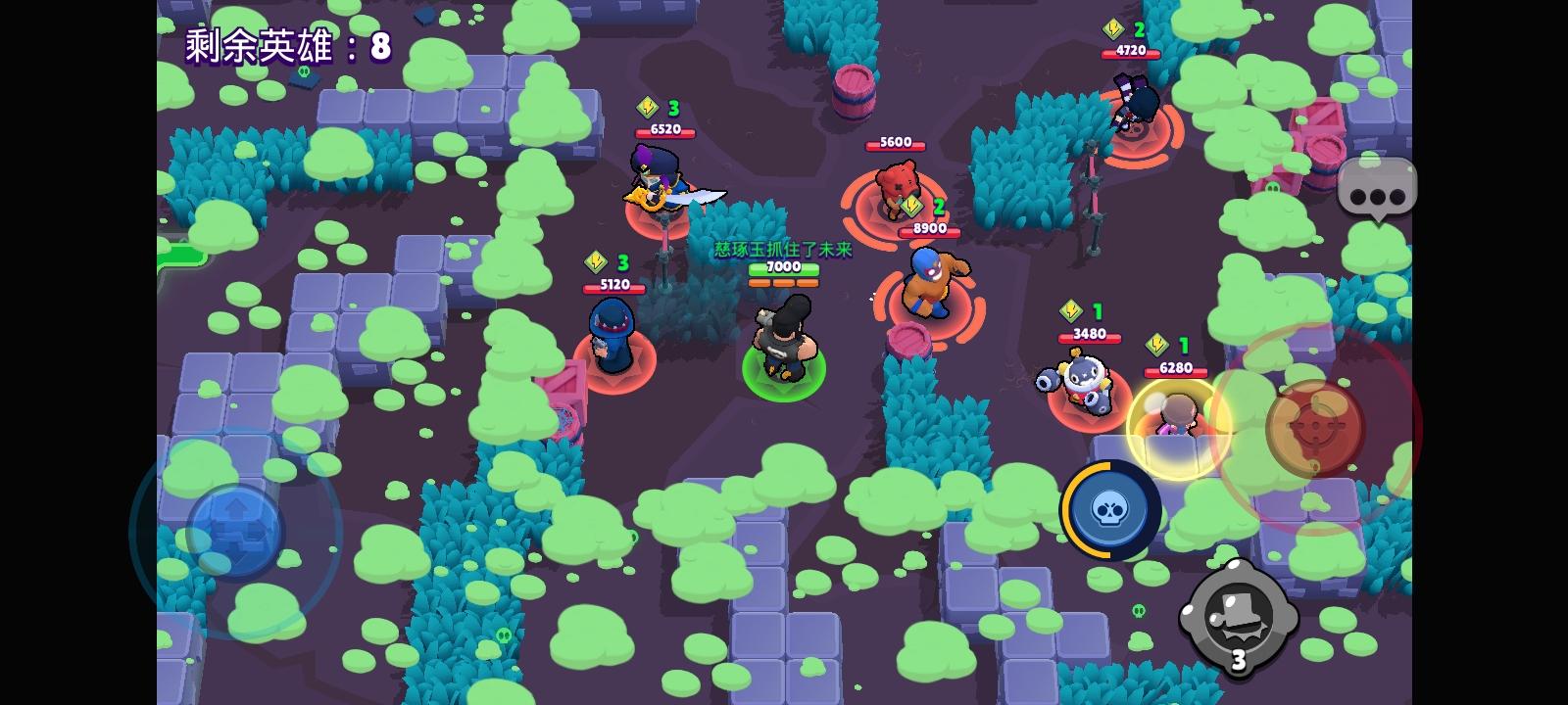1.雪梨,尽量不要与之发生冲突,公牛的射程比雪梨近,很容易成为她的刷大工具,在雪梨有大时尽量与之远离,有大的雪梨近战是无敌的,切忌与之交火,哪怕在草丛也尽可能远离有大的雪梨。但若雪梨没大,则可在草丛阴死。