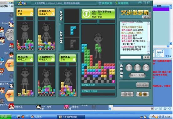 2,第二次频繁玩这个游戏,应该是到了大学的时候,2010-2011年左右,大学的时光,最深刻的记忆,就是跟隔壁寝室的同学,玩火拼俄罗斯方块玩到凌晨4点多(记不太清,有可能是2点多)。QQ游戏大厅的火拼俄罗斯方块,有各种道具,好友之间可以互相竞技。
