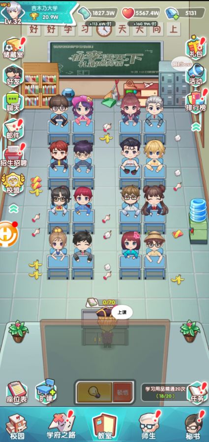 玩家需要用教室中的座位表来编排学生上课,学生在课堂中的所有事件都可以获得资源。
