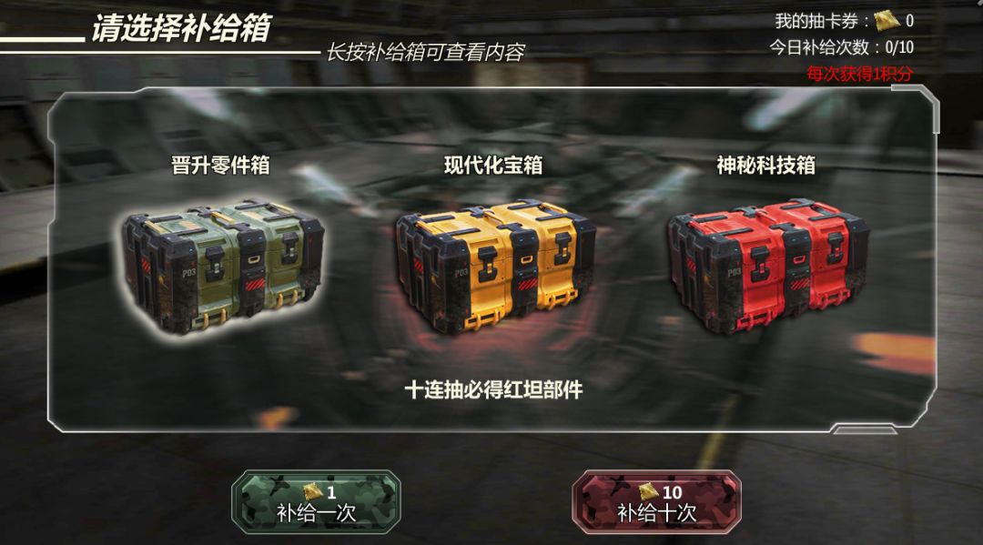 除了主界面底部菜单中的军械抽奖外,右上角的现代军械活动中也可以消耗资源抽取坦克。
