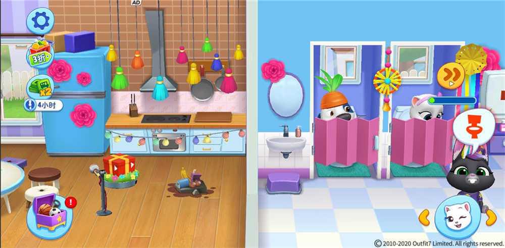 汤姆猫和它的小伙伴们每天一觉醒来,就需要玩家们悉心的照顾,在它们需要上厕所的时候头顶上会有“马桶”的按键;在它们想要踢足球的时候头顶上会有“足球”的按键;在它们淋到雨的时候头顶上会有“花洒”的按键...你会发现,你会因为这些需求而手忙脚乱,比如,这会汤姆猫想要上厕所了,汉克狗也想要,正当它们两个在上厕所的时候,贝卡兔也要上厕所。在这样的情况下,都不知道如何是好。所以玩家们适当合理安排时间,错开“一起上厕所”这样的局面安排。