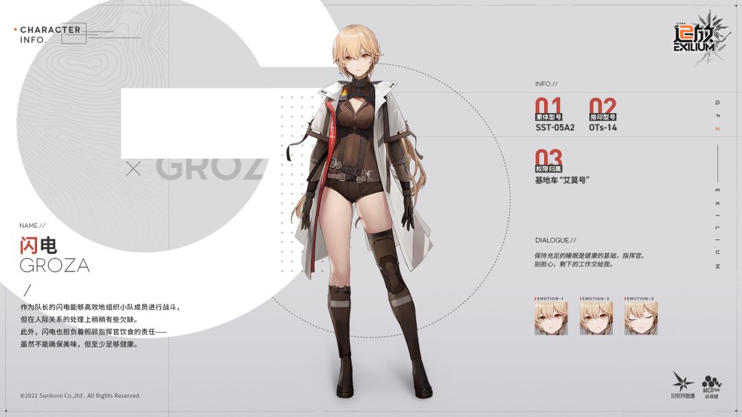 作为队长的闪电能够高效地组织小队成员进行战斗,但在人际关系的处理上稍稍有些欠缺。此外,闪电也担负着照顾指挥官饮食的责任——虽然不能确保美味,但至少足够健康。