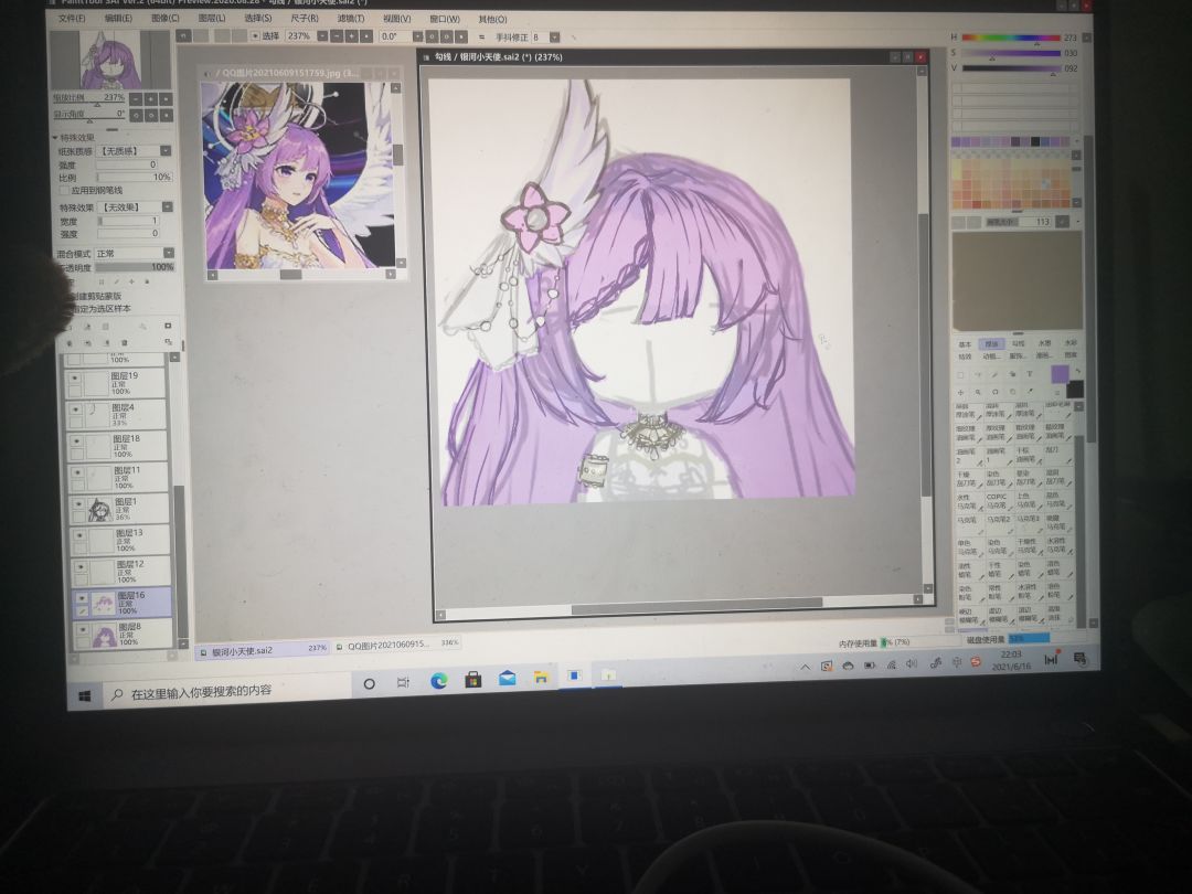 感觉还是有点进步了,嗯嗯,看来跑路也不是没有一点点好处,好吧,我就是想偷懒,不跑路了,不跑路了,跑路太累了,还总想着这件事情,感觉这个流光溢彩的头发有那么一丢丢的雏形了,我会把它画的很亮的,毕竟这次画的目标就是让它亮晶晶